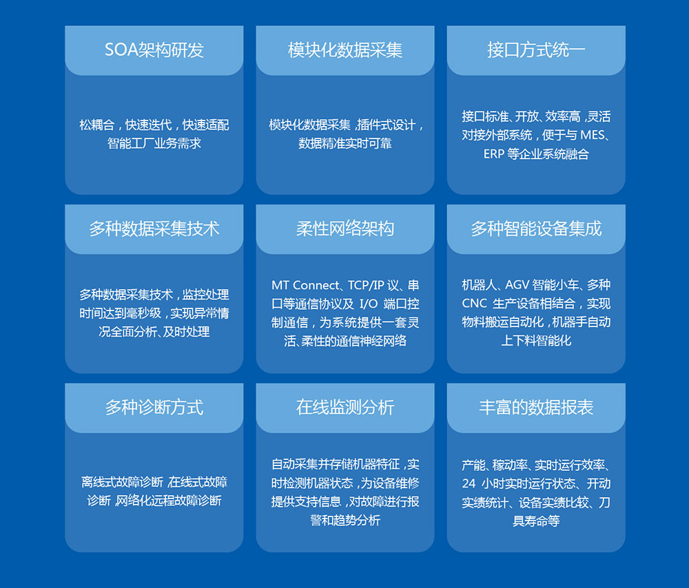 兼容多种主流系统,如MAZAK、三菱、KUKA、OKUMA、FANUC、机器人、AGV小车、GF慢走丝、快走丝等。
