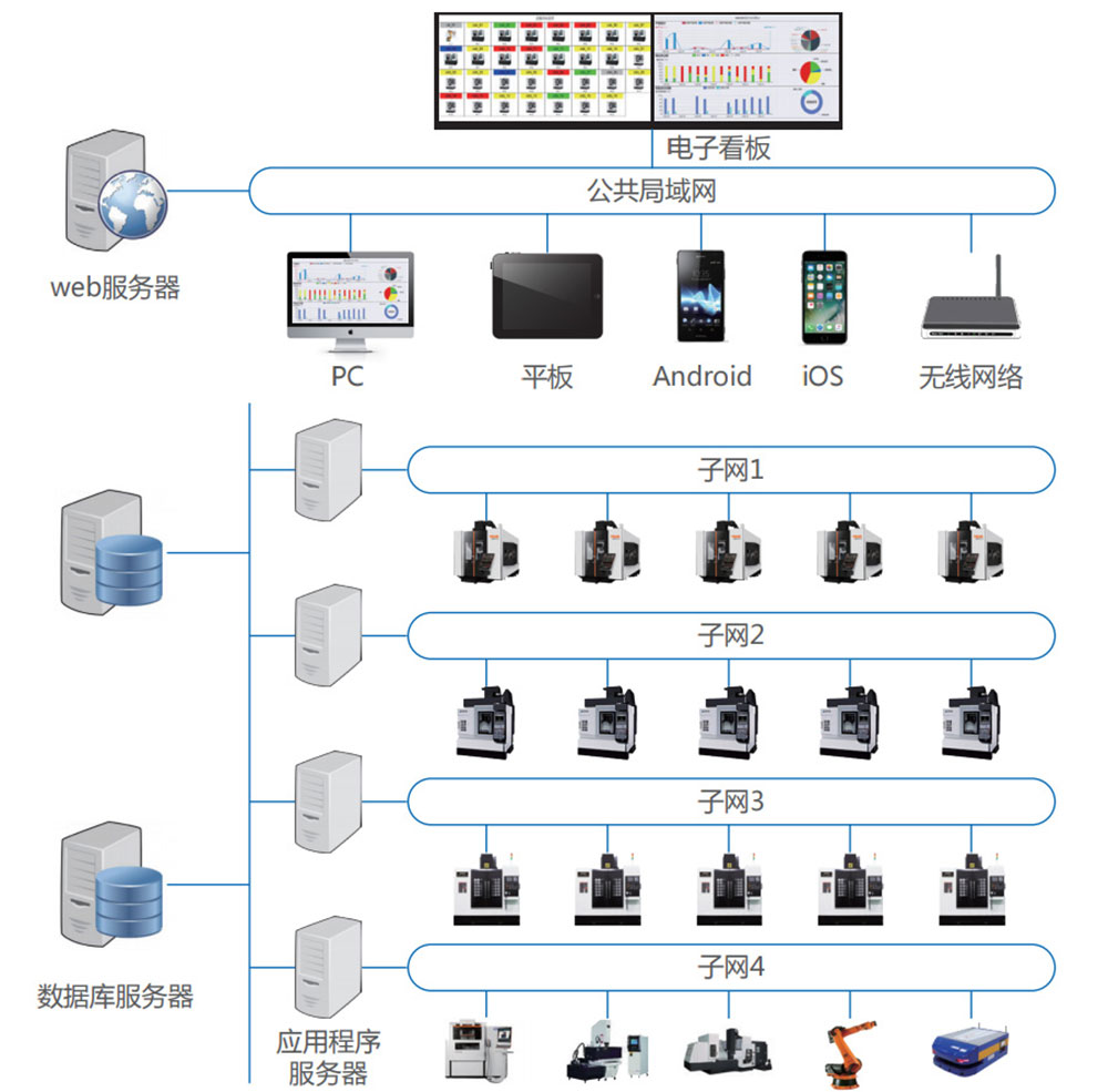 杭州良盛电气有限公司技术SCADA(Supervisory Control And Data Acquisition)数据采集与监控系统将所有机床及相关设备数据连接在一起,实现车间可视化,生产透明化,设备状态及报警信息实时化,产能、OEE及稼动率的统计动态化,加工信息及设备信息可追溯化,并可通过远程终端或智能手机等移动通信体让生产调度对生产现场进行远程监控和快速响应,从而对生产车间进行全面、及时、有效的管理,达到可视化节能生产,为实现智能制造自动化无人工厂提供软件系统支持。